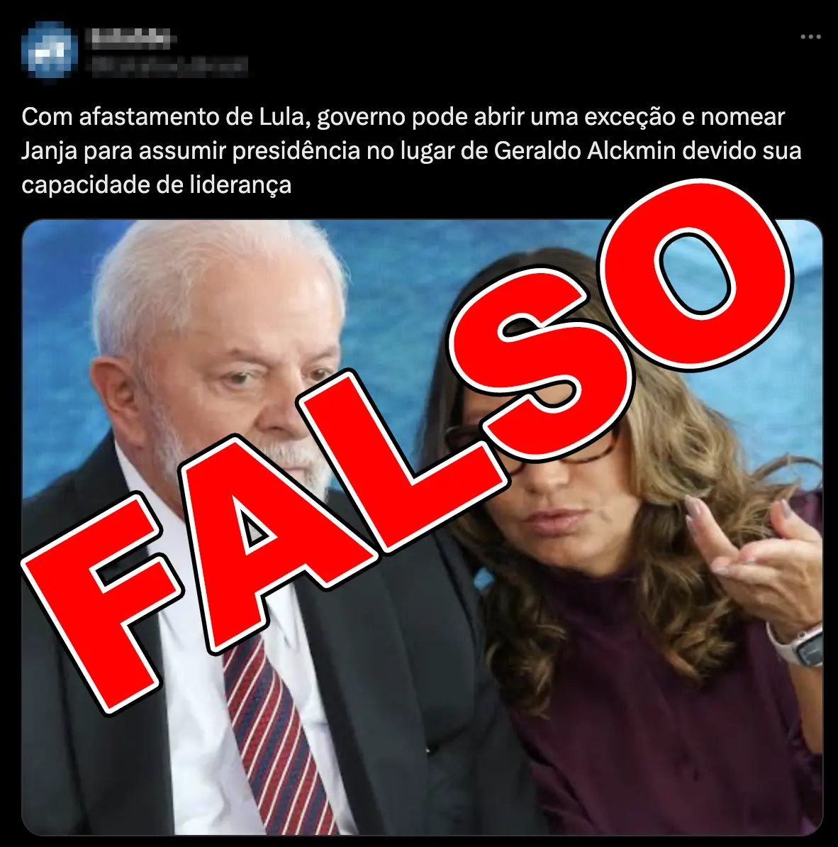 É mentira que Janja pode assumir presidência em caso de afastamento de Lula