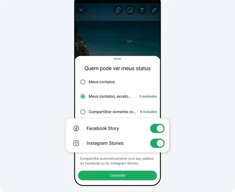 Quando a integração estiver disponível, os usuários verão uma opção nas configurações do WhatsApp ou quando tentarem realizar ações que envolvam mais de uma conta, como compartilhar seu status em outras plataformas. A Meta destaca que essa opção será opcional e estará desativada por padrão, garantindo que os usuários tenham controle sobre suas preferências.
